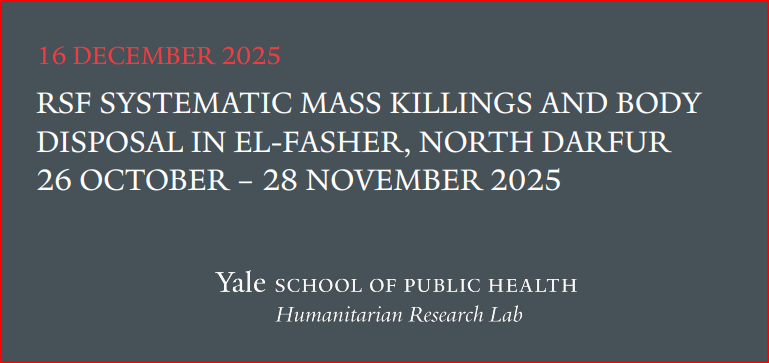 تنشر منصة “قف من أجل السودان” تفاصيل التقرير الصادر عن مختبر البحوث الإنسانية في كلية ييل للصحة العامة بتاريخ 16 ديسمبر 2025، والذي يقدم أدلة